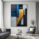 Abstract vertical composition with overlapping geometric panels. Deep blue tones, aged gold, and concrete gray with cracked texture. Modern and sophisticated design ideal for interior decor. Bring industrial elegance and visual depth to your wall with this exclusive art piece.