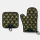 Blue Gold Art Deco Pattern Oven Mitt & Pot Holder Set