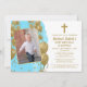 Blue Gold Baptism 1st Birthday Text Photo Invitation
