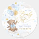 Blue Gold Bear Balloons Clouds Stars Baby Boy Classic Round Sticker