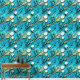 A pretty background pattern of blue, gold, white pour painting effect with white and gold cells. Swirling water design.
