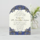 Blue Gold & Black Peacock Ivory Wedding Arch Shape Invitation