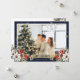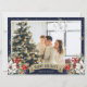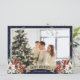 Celebrate the winter holidays with this blue photo holiday card featuring a watercolor painting of poinsettia, holly and red berries. Easily personalize this holiday card with your photo and text.