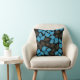 Blue gold broad leaves pattern on black throw pillow