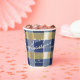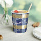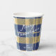 If you are wondering what color combinations to pick for your Christmas decor and gift wrap supplies this year, I've created collections of coordinating patterns to make life just a bit easier. This paper cup features a modern, cozy-looking plaid design, shown here in a striking blue and gold color palette. Add a message and name using the provided template. Search ID1009 to see other products and patterns in this color scheme.