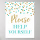Please help yourself sign for baby shower, bridal shower, birthday party or wedding in light blue and gold confetti pattern. Please note glitter effect is photographic effect only.