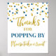 Blue Gold Confetti Thanks for Popping By Sign