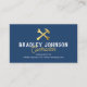 Make a bold, professional first impression with these modern construction contractor business cards. Featuring a stylish blue background and a striking faux gold foil hammer and spanner logo, this design is perfect for builders, contractors, and trades professionals who want to stand out.