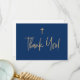 Blue Gold Cross Boy name First communion Thank You Card