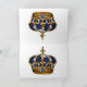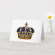 Blue and gold royal crown greeting card can be customized as needed. Move, delete and re-size the crown on the front, inside and back. Change the background color and add text.