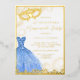 Blue Gold Dress Masquerade Party Quinceanera Foil Invitation