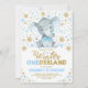 Blue Gold Elephant Winter ONEderland Snowflake Invitation
