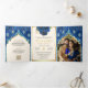 Blue Gold Floral Curtain Indian Hindu Wedding Tri-Fold Invitation