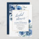 Blue gold floral elegant peony bridal shower invitation