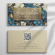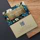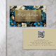 Blue Gold Floral Foil QR Code Luxe Business Card