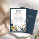 Blue Gold Floral Formal Elegant Wedding RSVP Card