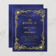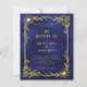 For an elegant, Gatsby style wedding. A navy blue uneven colored background decorated with a golden art deco style frame with flowers. Personalize and add your names and details.