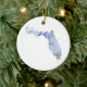 Florida travel art. Blue watercolor state map with beautiful gold metallic details.