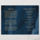 Funeral memorial program featuring on the front a photo of the deceased, thier name, dates, the memorial venue, date of the event, and elegant gold frame. On the inside is an obituary, and order of service; and on the back another photo, a thank you note and the second venue for after the funeral.