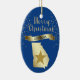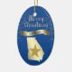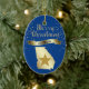 Give them something pretty from the beautiful state of Georgia! On the front of this ornament is a shiny gold silhouette image of the state, with a darker gold star imposed over it. Above the state and star image is the glittery message MERRY CHRISTMAS in script, and a banner with the text in blue GEORGIA. Around it all are gold snowflakes. The images and text are placed on a deep blue background. The back of the ornament has text fields in light gold for you to customize, and a second gold star image. You may change the background color, if you'd like, by choosing CUSTOMIZE.