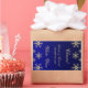 This festive and elegant personalized navy and royal blue with gold faux glitter (PRINTED) snow flakes white wine label sticker matches the wedding invitation shown below. The text is customizable. If you need help personalizing this with your own details, or if you need any changes, please email niteowlstudio@gmail.com.