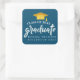 Beautiful Blue Gold Grad Hat Class of 2026 Graduation Square Sticker | Graduate Envelope Seal.