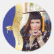 Blue | Gold Graduate Wave Grad Cap Photo Classic Round Sticker