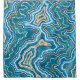 Blue, sea green and gold graphic gemstone agate abstract watercolor painting.