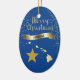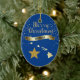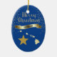 Give them something pretty from the beautiful state of Hawaii! On the front of this ornament is a shiny gold silhouette image of the state, with a darker gold star imposed over it. Above the state and star image is the glittery message MERRY CHRISTMAS in script, and a banner with the text in blue HAWAII. Around it all are gold snowflakes. The images and text are placed on a deep blue background. The back of the ornament has text fields in light gold for you to customize, and a second gold star image. You may change the background color, if you'd like, by choosing CUSTOMIZE.