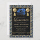 Celebrate a milestone in style with this ornate birthday party design. A rich Blue and gold heart damask pattern frames the invitation, accented by a dramatic black background and elegant gold typography. The centerpiece features a Blue rose flanked by golden balloons and tassels, adding festive glamour and youthful charm. Perfect for formal birthday celebrations, this design blends regal sophistication with celebratory sparkle.