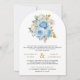 Blue Gold Ivory Floral Roses QR Code Photo Wedding Invitation