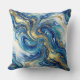Blue Gold Marble Luxury Decor Fluid Art Pattern Throw Pillow