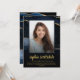 Elegant and trendy navy blue and gold agate/marble graduation photo / senior portrait announcements. Personalize with your own text and photo.
