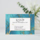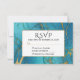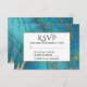 An elegant RSVP card featuring classic blue turquoise marble with gold inlay.