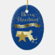 Give them something pretty from the great state of Massachusetts! On the front of this ornament is a shiny gold silhouette image of the state, with a darker gold star imposed over it. Above the state and star image is the glittery message MERRY CHRISTMAS in script, and a banner with the text in blue MASSACHUSETTS. Around it all are gold snowflakes. The images and text are placed on a deep blue background. The back of the ornament has text fields in light gold for you to customize, and a second gold star image. You may change the background color, if you'd like, by choosing CUSTOMIZE.