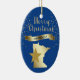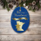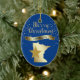 Give them something pretty from the great state of Minnesota! On the front of this ornament is a shiny gold silhouette image of the state, with a darker gold star imposed over it. Above the state and star image is the glittery message MERRY CHRISTMAS in script, and a banner with the text in blue MINNESOTA. Around it all are gold snowflakes. The images and text are placed on a deep blue background. The back of the ornament has text fields in light gold for you to customize, and a second gold star image. You may change the background color, if you'd like, by choosing CUSTOMIZE.