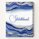 Personalize this pretty blue and gold notebook/journal/sketchbook with so many choices of paper. Everything from plain sketch paper to graph paper. Add your name and initial on the front and the type of notebook on the back.
