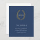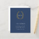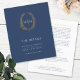 Blue and gold oval of leaves monogram wedding guest information details. Beautiful wedding information leaflet ideal to help your guest understand how to reach your wedding destination and see the schedule, accommodation information, gifting details on the wedding day. Personalize with your own details. Other matching items are also available. If you need help please contact me. © Original art and design by Sarah Trett exclusively for www.mylittleedenweddings.com
