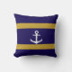 Blue & Gold Nautical Striped Throw Cushion