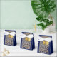 Delight your guests with this elegant Art Nouveau wedding favor box featuring an intricate golden peacock on a deep blue background. The text is in gold to offset the blue background. The gold color is not actual foil but a rich gold colored pigment and the lovely peacock comes from an antique book cover. The image on the back is called "Hundreds of Peacocks of Gorgeous Plumes" by Warwick Goble. Easily change the details to your own. If you would like to you can also change the font style, color, text and placement. If you like the design but would like some changes, please reach out to me in Zazzle.