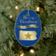 Give them something pretty from the great state of Pennsylvania! On the front of this ornament is a shiny gold silhouette image of the state, with a darker gold star imposed over it. Above the state and star image is the glittery message MERRY CHRISTMAS in script, and a banner with the text in blue PENNSYLVANIA. Around it all are gold snowflakes. The images and text are placed on a deep blue background. The back of the ornament has text fields in light gold for you to customize, and a second gold star image. You may change the background color, if you'd like, by choosing CUSTOMIZE.