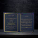 An elegant 4-page program. A dark blue background, a faux gold frame, blue florals and space for your photo on the front. Personalize and add name, dates and your text.