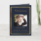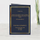 An elegant 4-page program. A dark blue background, a faux gold frame and space for your photo on the front. Personalize and add name, dates and your text.