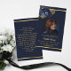Blue gold photo floral funeral prayer card