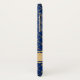 This stylish royal blue and gold Case-Mate Barely There iPhone X Case has a gold simulated glitter quatrefoil pattern that is sure to be a standout! The case has a wide gold band across the bottom that is personalized with a name or other text.