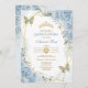 Blue Gold Quinceañera Butterfly Geometric Frame Invitation