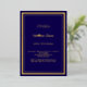Blue gold simple luxury birthday foil invitation