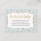 Blue gold stars boy book request card featuring a light blue background and gold stars. Tuck this little card in with your baby shower invitation to ask guests to "bring a book instead of a card" to help build baby's first library! Please contact the designer at info@lemontreecards.com to request matching items.