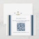 Classy and simple, this wedding invitation online reply enclosure card features a faux gold foil anchor monogram, ticking stripes, easy to edit text and a custom QR code to direct guests to an online RSVP. This wedding invitation suite an excellent choice for a yacht club or seaside setting that gives an elegant nod to a nautical theme without feeling cliché.