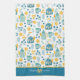 Blue Gold Tea Time Pattern Monogram Kitchen Towel